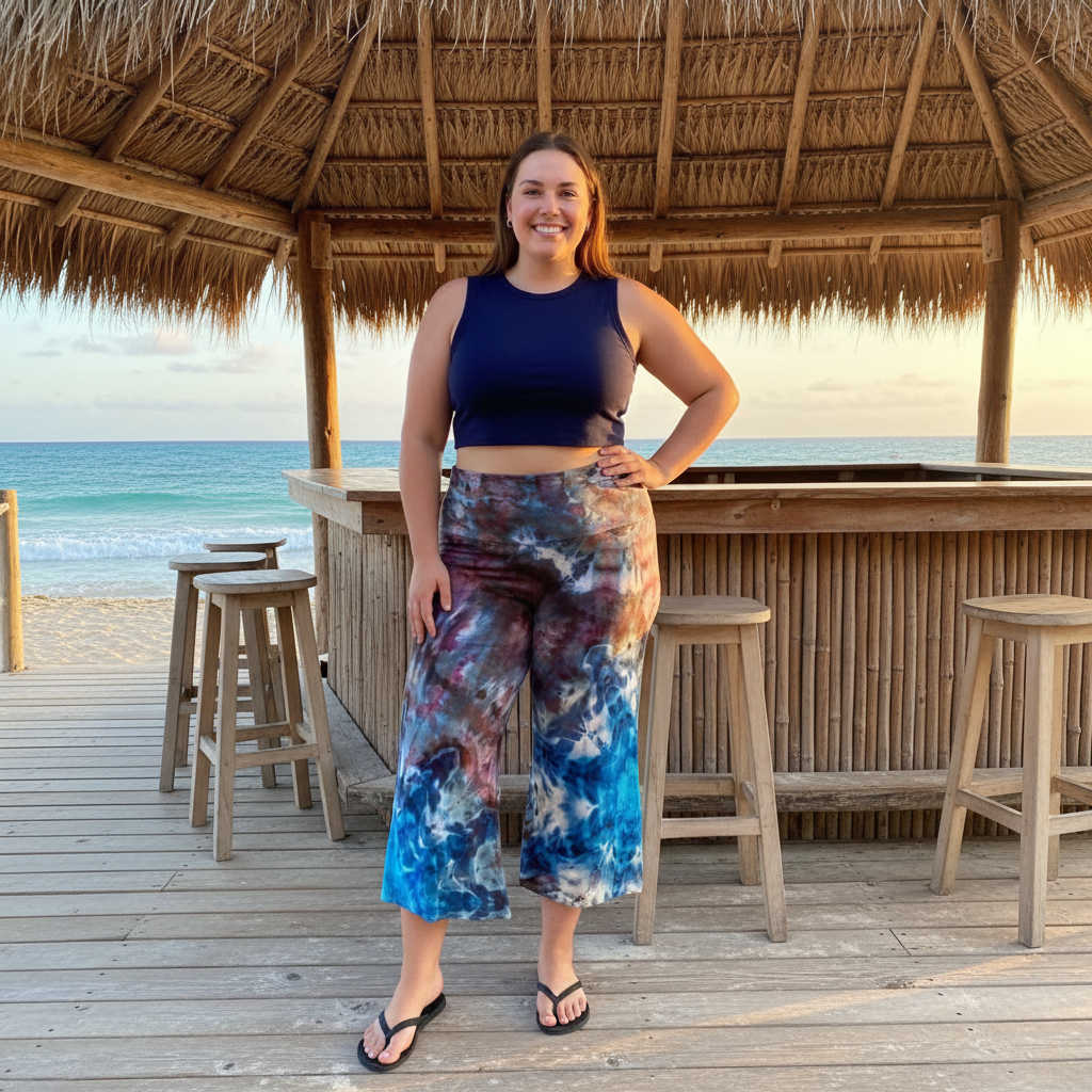 Beach vibes with some night life in these capri length palazzo pants by Slipknot Tie Dyes, These are our best sellers of all time. 95% Rayon 5% Spandex