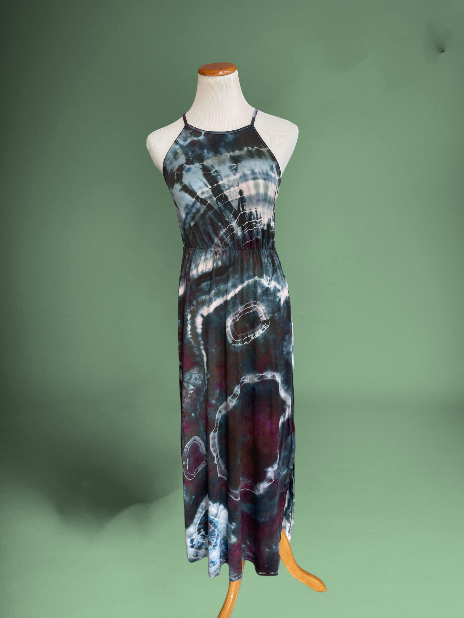 SKTD earthy soft rayon spaghetti strap dress with side slit and elastic waist